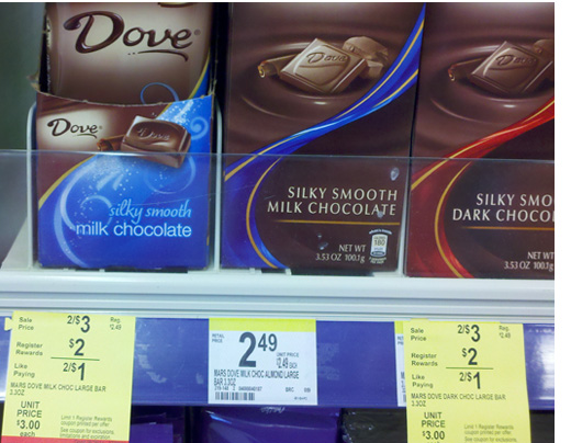 The Dove 3.3oz chocolate bars are producing a Register Reward when you purchase 2.