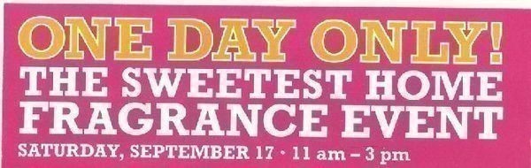 Join us for the Sweetest Home Fragrance Event on Saturday, September 17 from 11am – 3pm!Head over HERE to see more on the event straight from their Facebook Page!