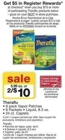 or $2/1 Theraflu Multi-Symptom Severe Cold with Lipton Green Tea & Honey